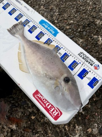 この魚を知る者なら分かるだろう。高級魚として知られるカワハギの仲間。肝の美味さは格別で、冬場は特に珍重される。フカセ釣りでこいつが掛かるとは、冬の海からの粋なプレゼントだ。